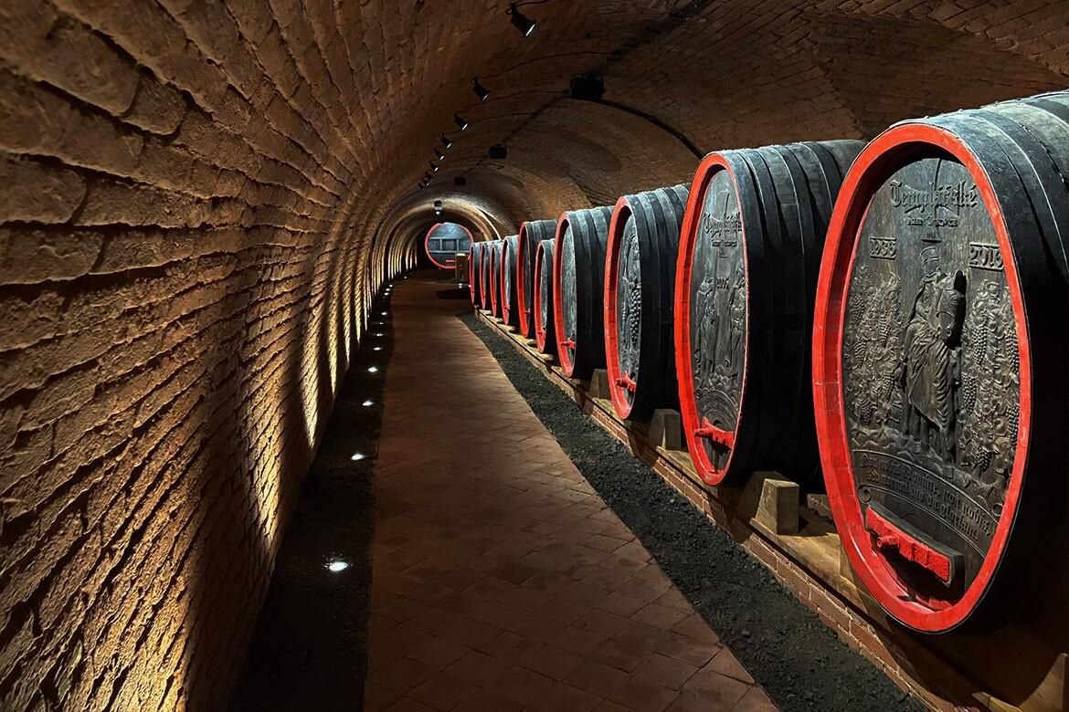 Návštěvníci mohou vstoupit do působivého labyrintu podzemních chodeb, kde víno zraje v ideálních podmínkách. Prohlídky zahrnují: